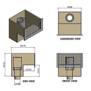 Dimensions- L 462mm x W 446mm x D 440mm plus inlet.