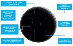 Inside the PURE Pond Bomb there is a unique combination of friendly bacteria and enzymes, which get to work as soon as the Bomb hits the water to clean up organic waste and break down the ammonia and nitrite, leaving your pond crystal clear and healthy.