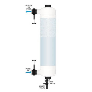 You can install a Tempest Filter after a primary filter on a gravity-fed set-up, such as the Nexus+, and after a UV Clarifier, such as an evoUV. The slide valves on the Tempest Filter enable connection to 1½” pressure pipe.